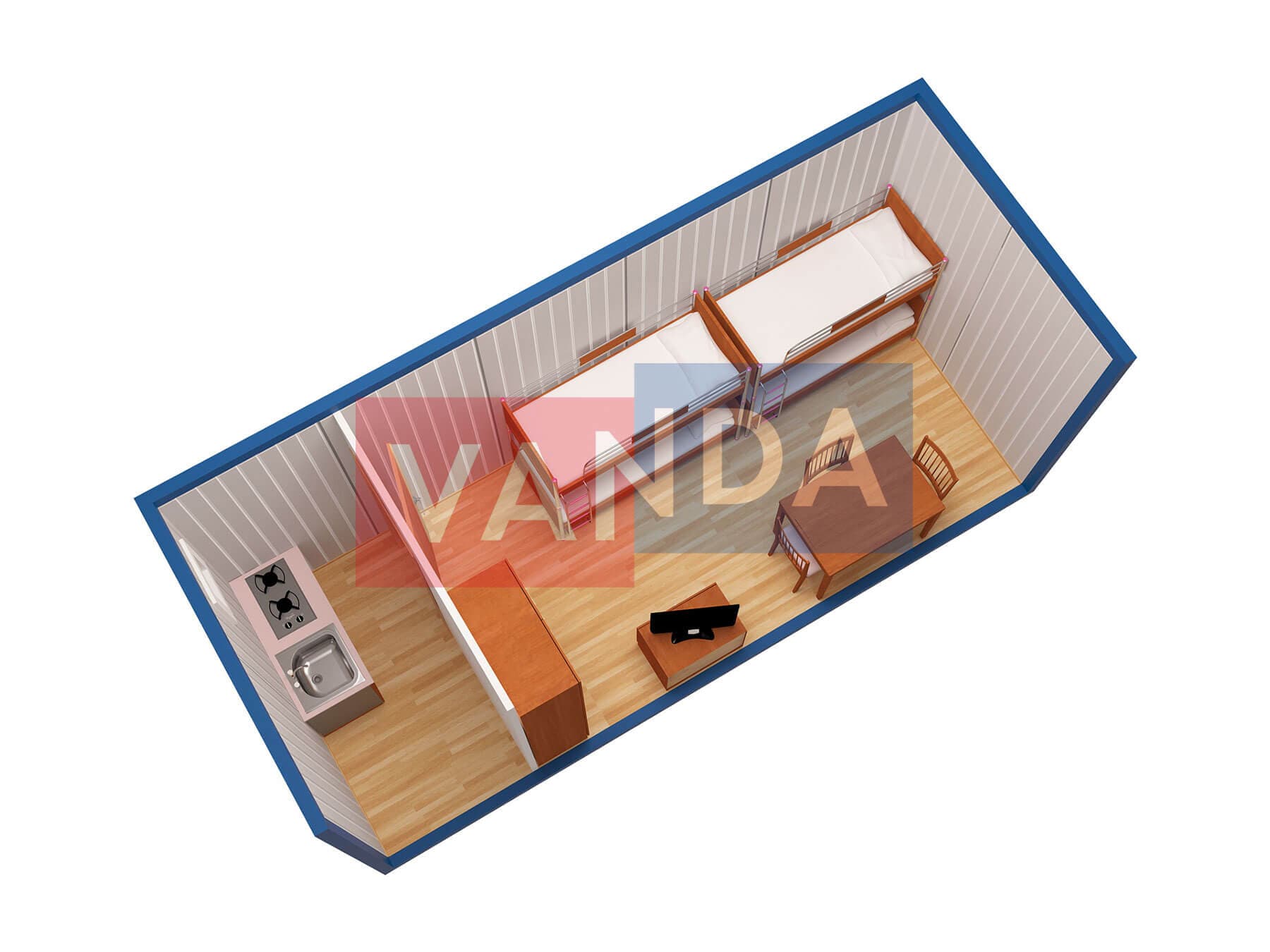 Металлическая бытовка с кухней в тамбуре 5,85 x 2,4 - Оргалит ДВП