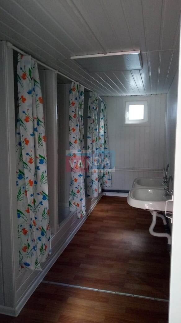 Блок контейнер сантехнический №2 изготавливается из несущего каркаса (верхняя и нижняя обвязка): швеллер 100х50х3 мм., угловые стойки: сложно - гнутый угол 90х90х3 мм., крыша блок-контейнера: металл сварной 0,9-1 мм., качественная наружная отделка: оцинкованный профлист, внутренняя отделка стен: Вагонка ПВХ, внутренняя отделка потолка: Вагонка ПВХ, вспомогательный деревянный каркас (стены): брусок 40х75 мм., лаги пола: обрезная доска 40х100 мм., лаги потолка: обрезная доска 40х100 мм., выполнено утепление: Минеральная вата «ISOVER» – 50 мм. и пароизоляция: плёнка техническая, черновой пол состоит из: обрезная доска 20 мм. (2 сорт), чистовой пол покрыт: ДСП строительное 16 мм., отделка пола: линолеум бытовой. Контейнер комплектуется окнами: ПВХ однокамерное, одностворчатое, п/о 600х600, входной дверью: ДГ 21-8 обшита снаружи оцинкованным листом, врезной замок и внутренними дверями: ДГ 21-8 (при наличии перегородки). Если в БК присутствуют перегородки, то для них используется: брусок 40х50 мм. В блок контейнере есть электро-обеспечение: электрика в кабель канале с УЗО, установлена сантехника: раковина в комплекте - 2 шт.;